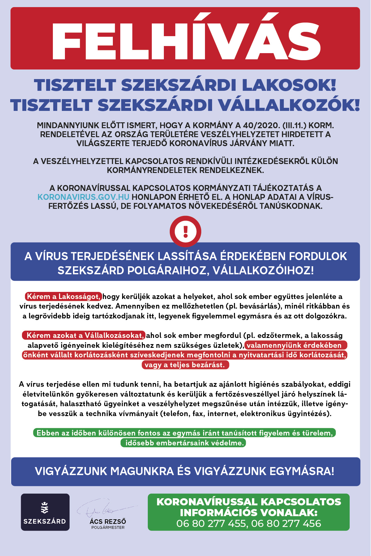 Az önkormányzat felhívásai