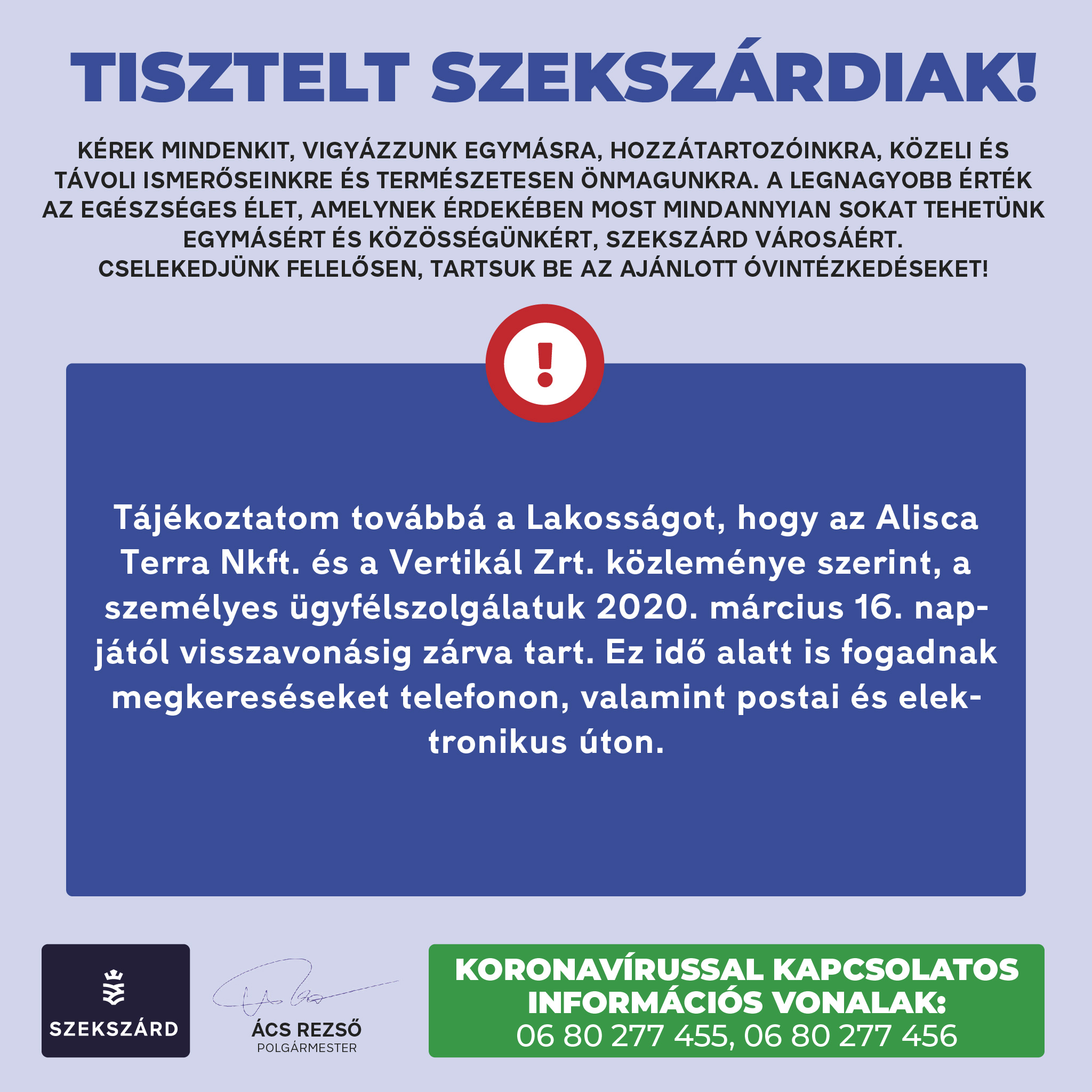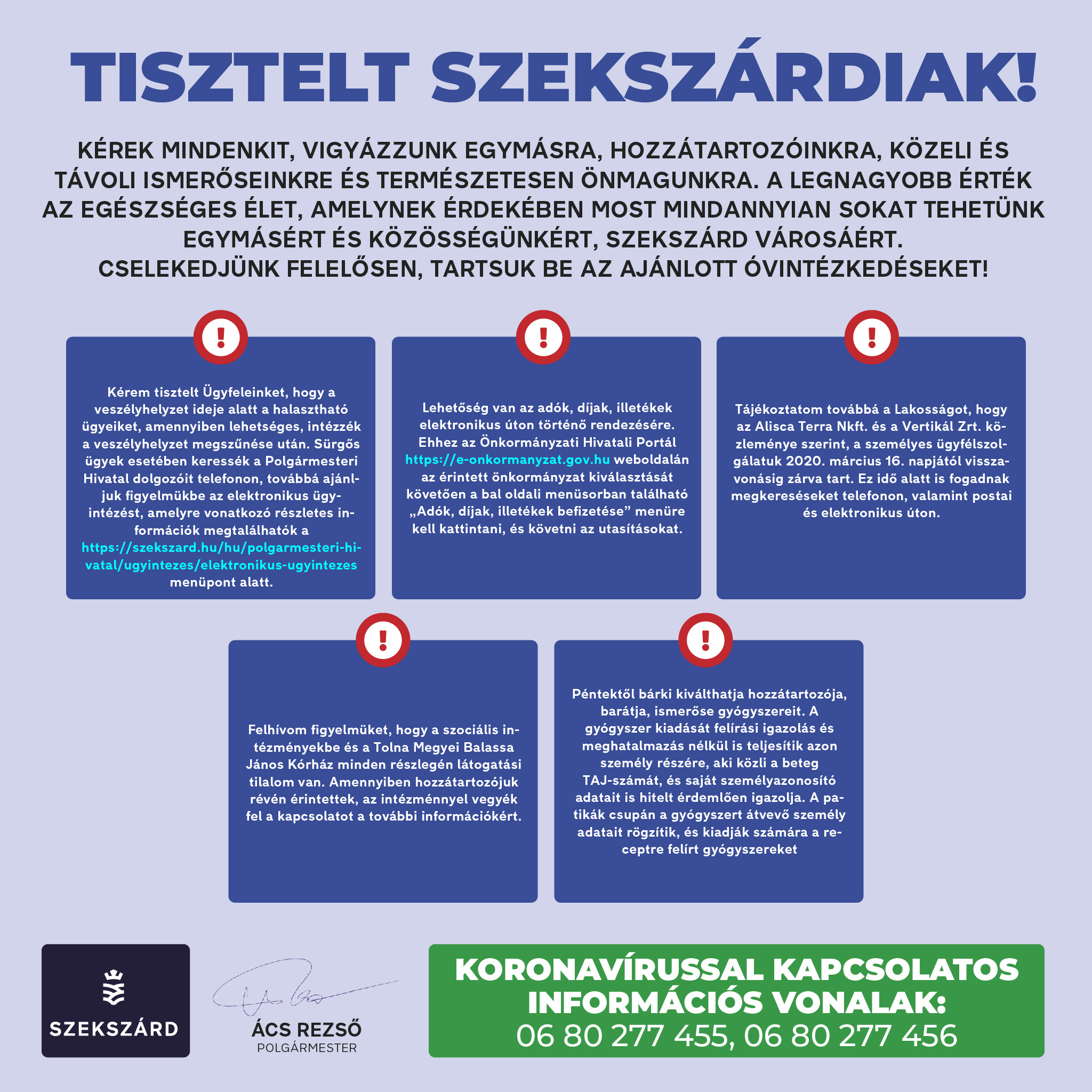 Szekszárd Megyei Jogú Város Önkormányzata hivatalos közleményei 2020.03.13 és 2020.06.18 között