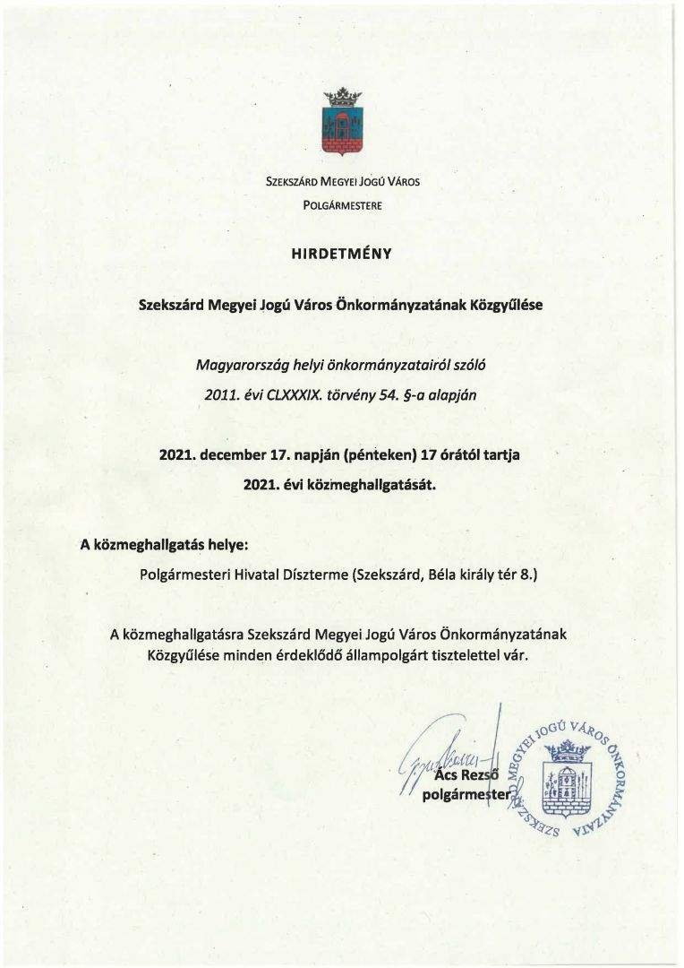 Szekszárd Megyei Jogú Város Önkormányzata hivatalos közleményei 2020.11.04-től