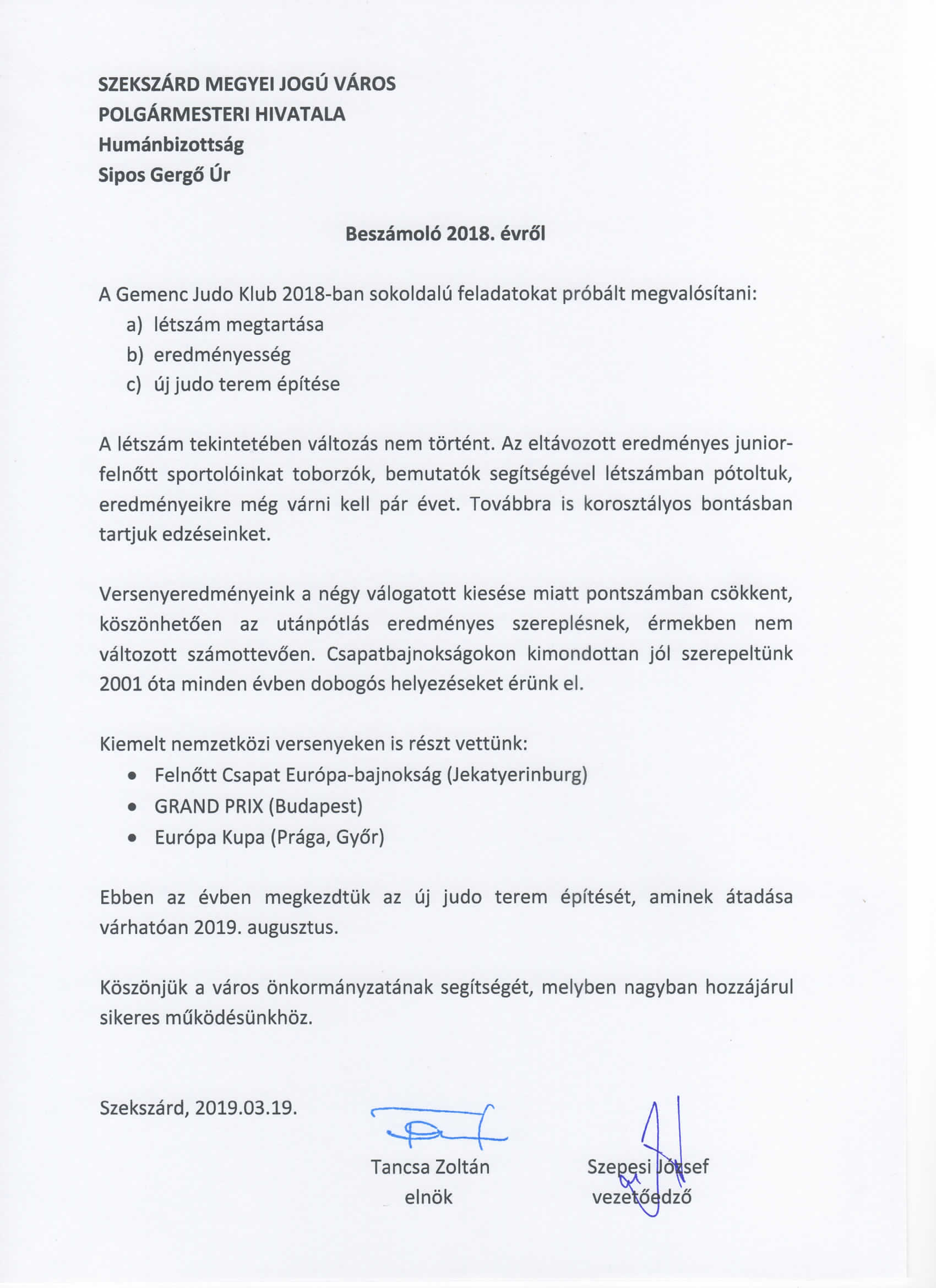 Szakmai beszámoló a Szekszárdi Sportközpont NKFt. 2018. évi munkájáról és terveinek bemutatásáról
